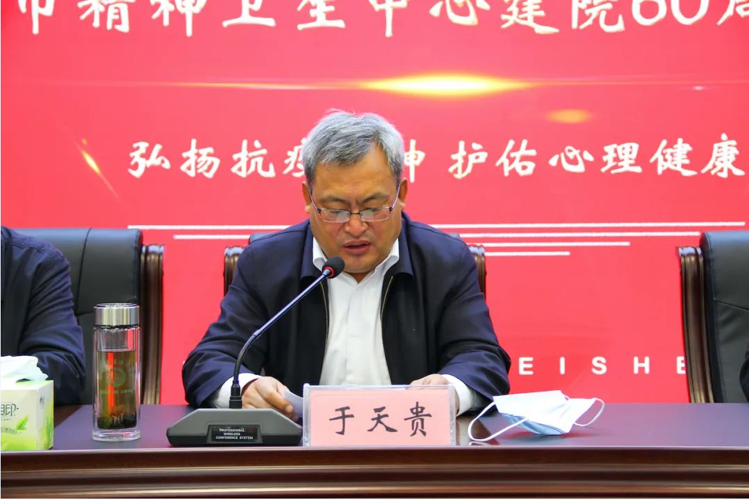 (山东省精神卫生中心党委副书记、主任于天贵出席会议并讲话现场照片)