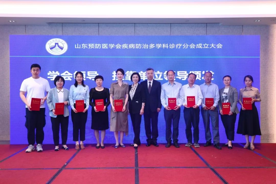 山东预防医学会会长宗玲、山东省公共卫生临床中心党委书记张延安同志向主任委员、副主任委员颁发聘书